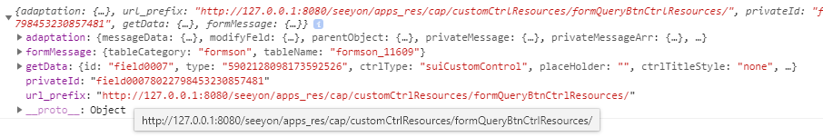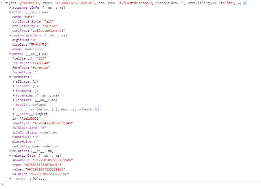 e. customFieldInfo : 自定义控件的信息,里面包含pc,移动的js信息和入口方法信息,路径信息。
