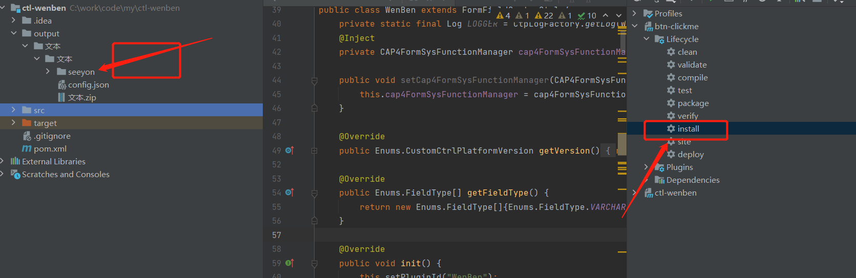 1、直接利用maven的install 命令,会生成output目录,目录内有一个seeyon目录就是控件补丁,config.json就是控件描述文件
