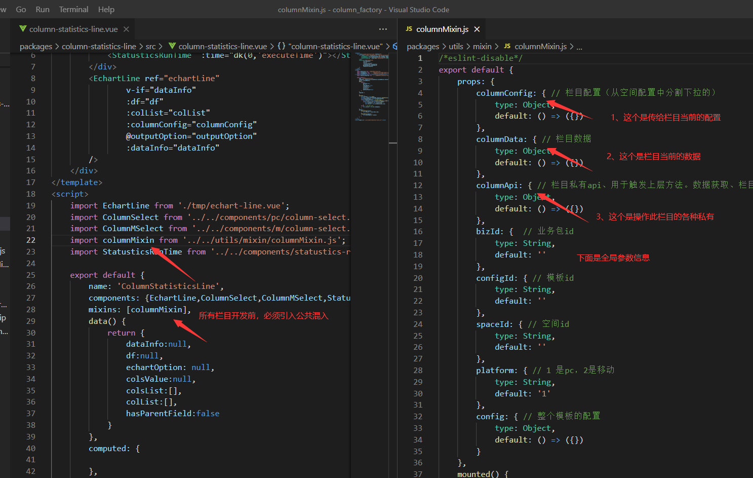 此混入非常重要,定义了栏目的数据来源,配置来源,公共参数等等信息。其它api都是基础,这里面都是原始属性。