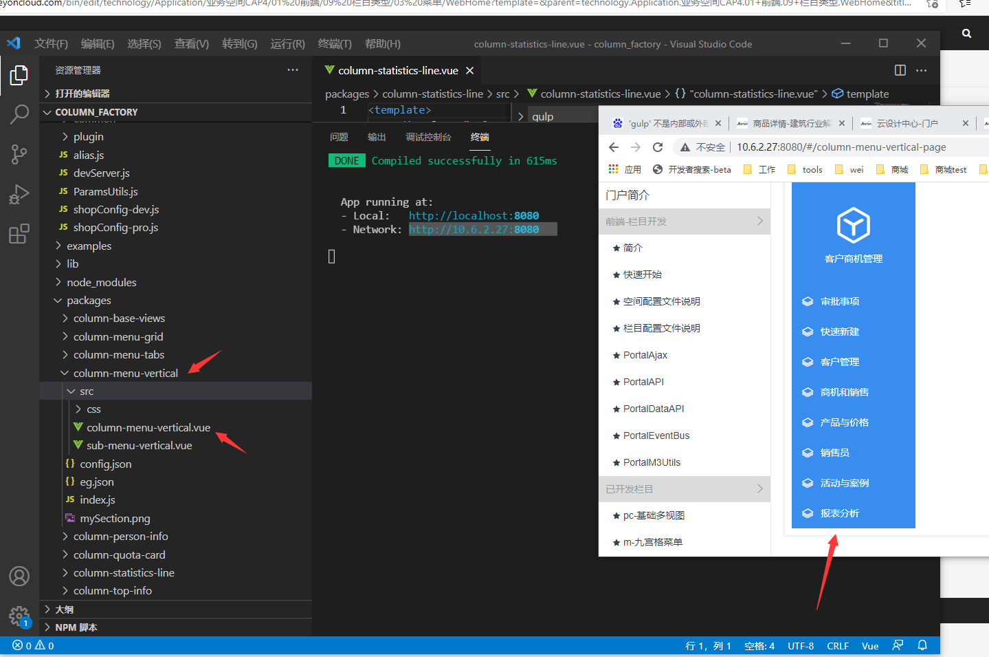 栏目【column-menu-vertical】提供了一个菜单栏目的范本,后续栏目开发可以此为基础做扩展,或者重新开发。