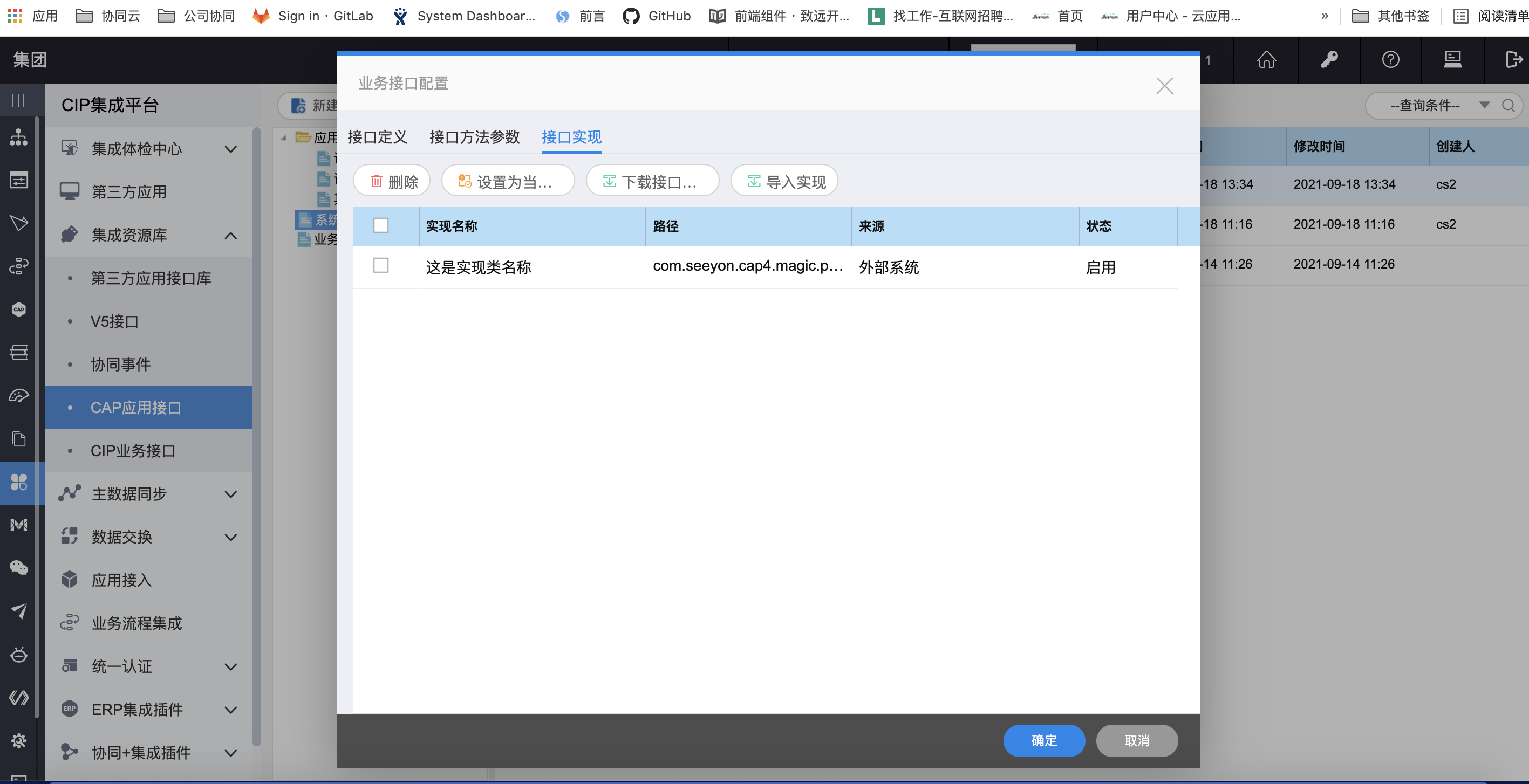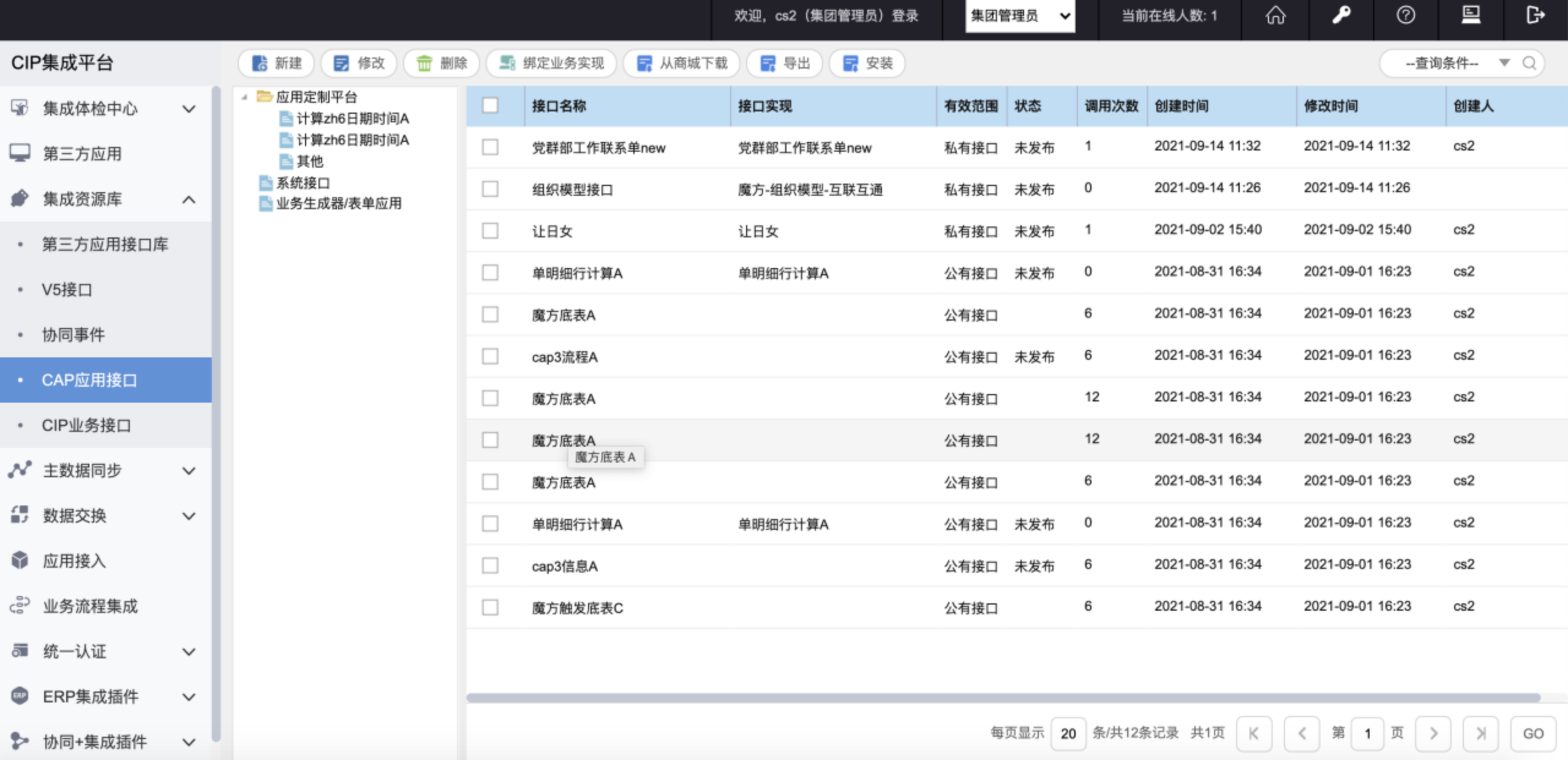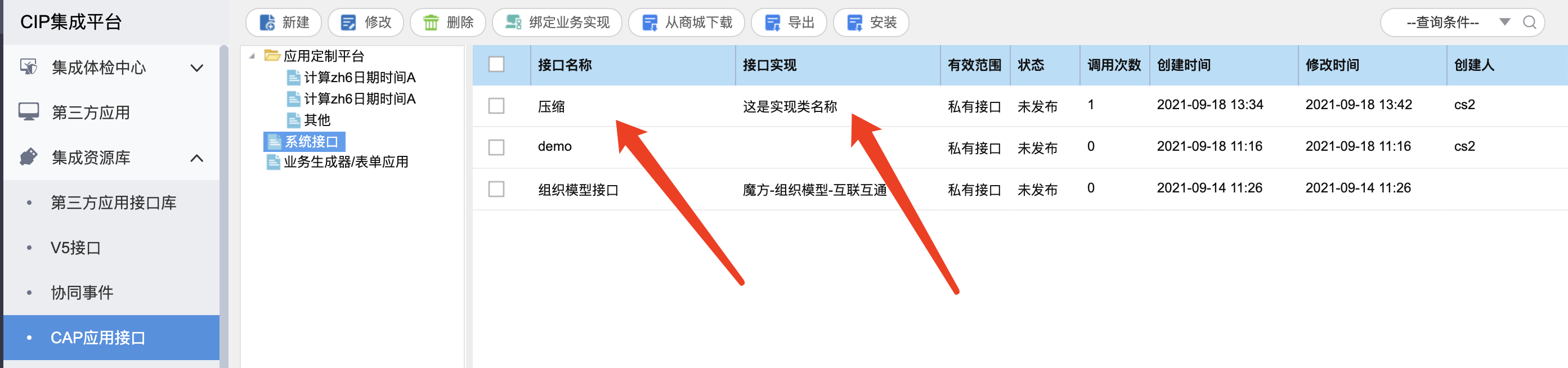 # (2) 集团管理员/单位管理员进入CIP集成平台-->集成资源库-->CAP应用接口