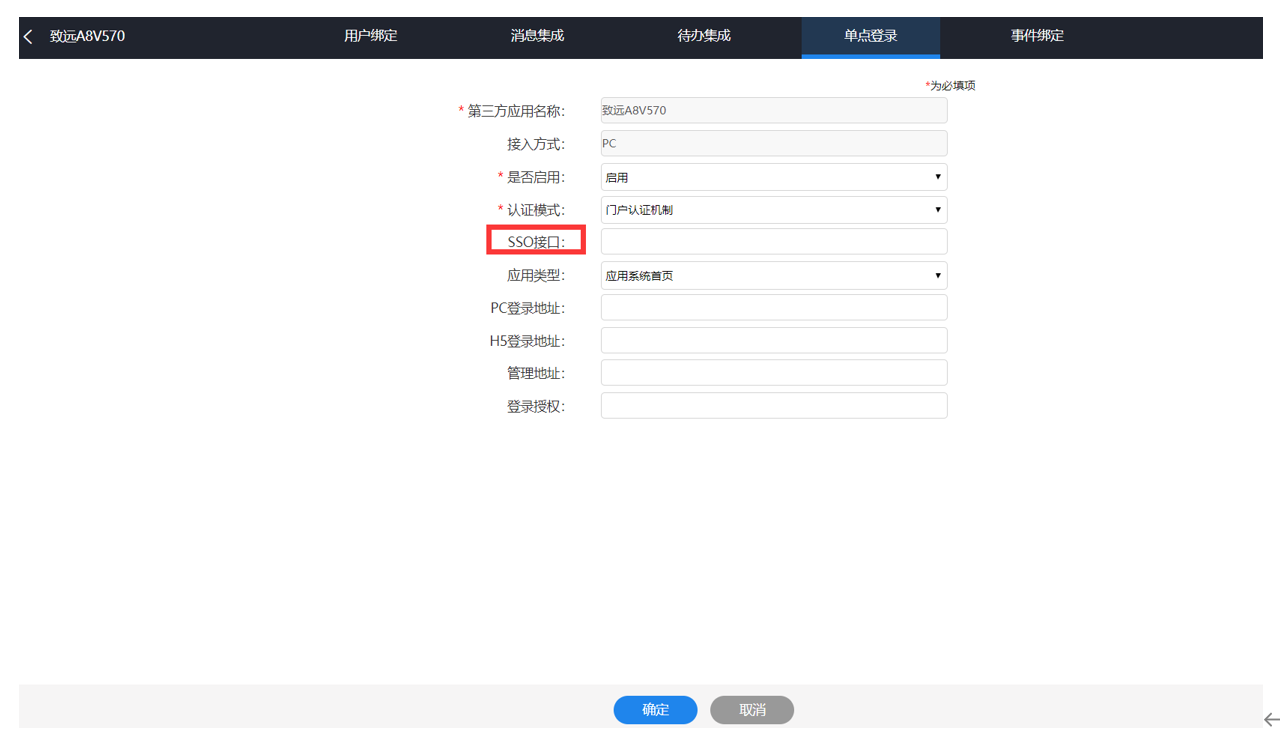 【门户认证机制】: SSO接口配置行会显示出来,为带认证模式。