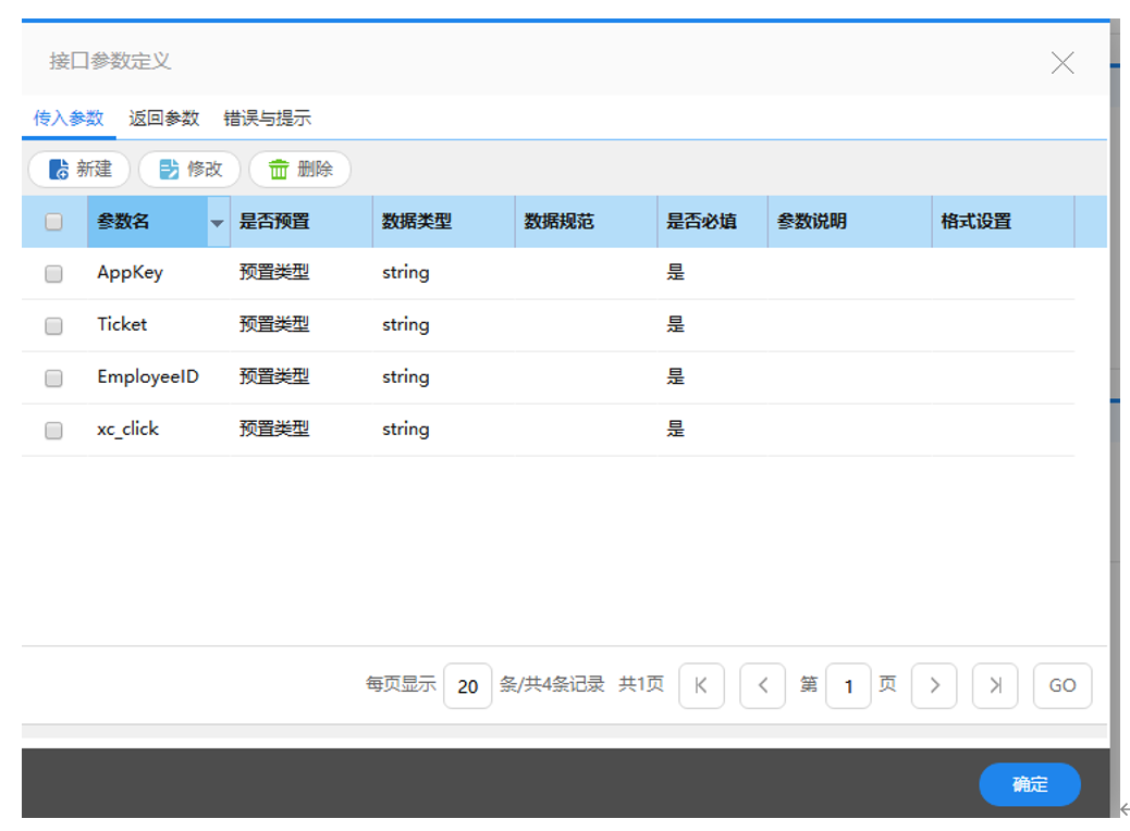 页面跳转接口传入参数定义: