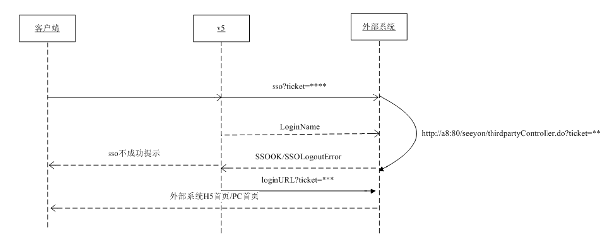 - OA获取到SSO接口地址,会在SSO接口地址后拼接上ticket,格式如【SSO接口 &ticket=XXX】,由OA服务器请求三方接口服务。