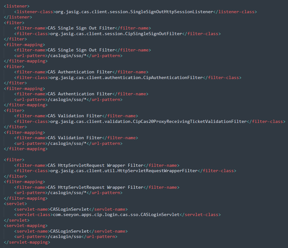 7、OA配置过滤器,对请求进行单点登录的过滤 修改ApacheJetspeed\webapps\seeyon\WEB-INF\web.xml文件,将这部分注释放开。