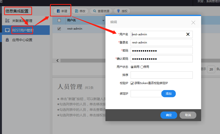 将创建的rest帐号、密码给群杰