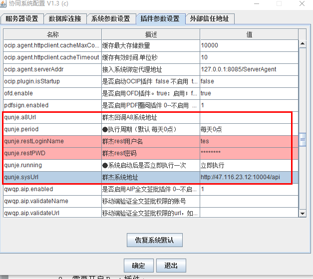 qunje.restLoginName 群杰接口访问授权用户(注意是群杰系统的rest账号,不是A8的rest账号,去跟群杰人员要)