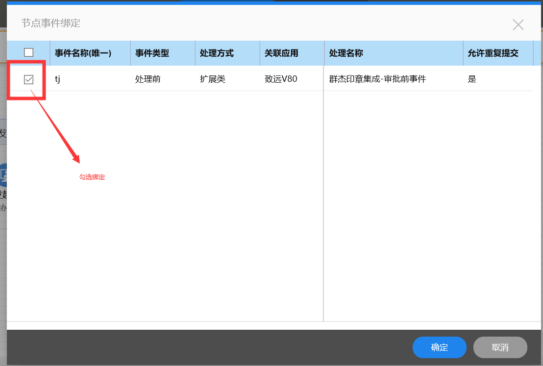 绑定用印申请同步事件到指定节点