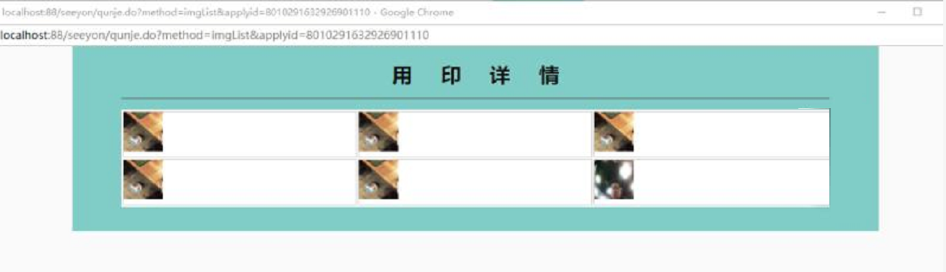 点击用印详情,弹出页面(群杰系统的页面)显示详细用印情况(示例如下图):