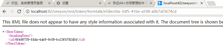 浏览器上打链接:地址/seeyon/rest/token/用户名/密码