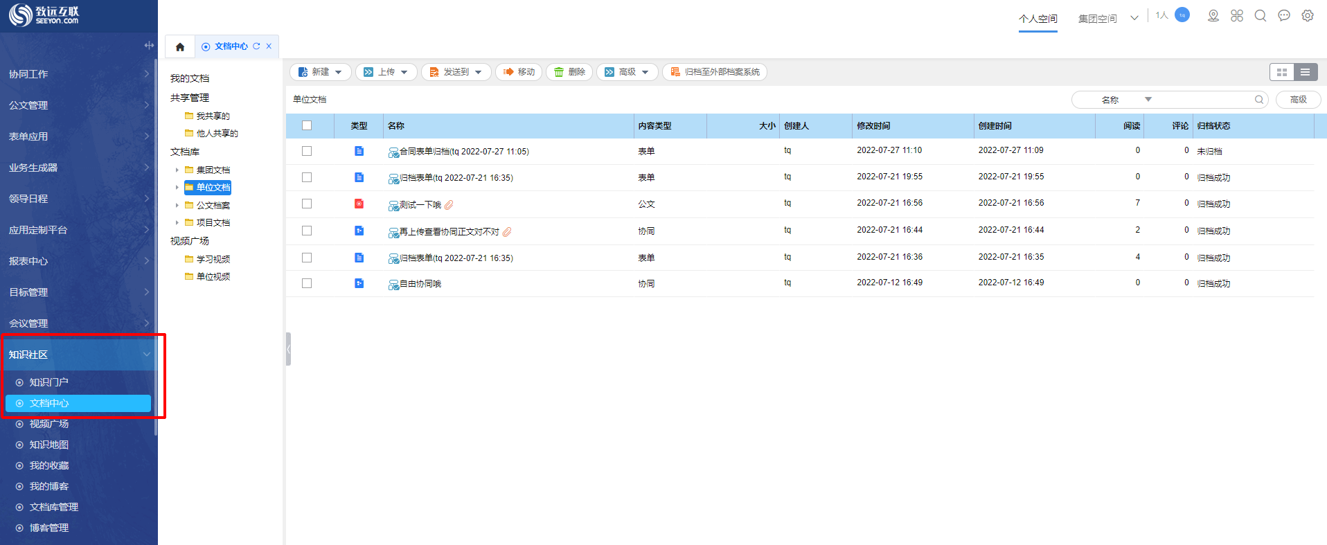 电子档案后台配置完成后,【外部系统档案管理员】可进入文档中心进行归档操作,以下为操作流程