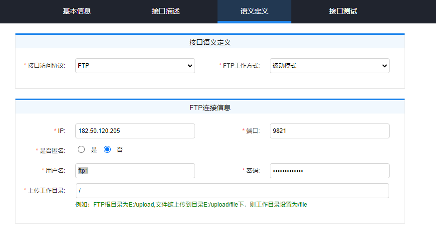 新建接口时填写接口的基本信息、接口描述、语义定义等内容