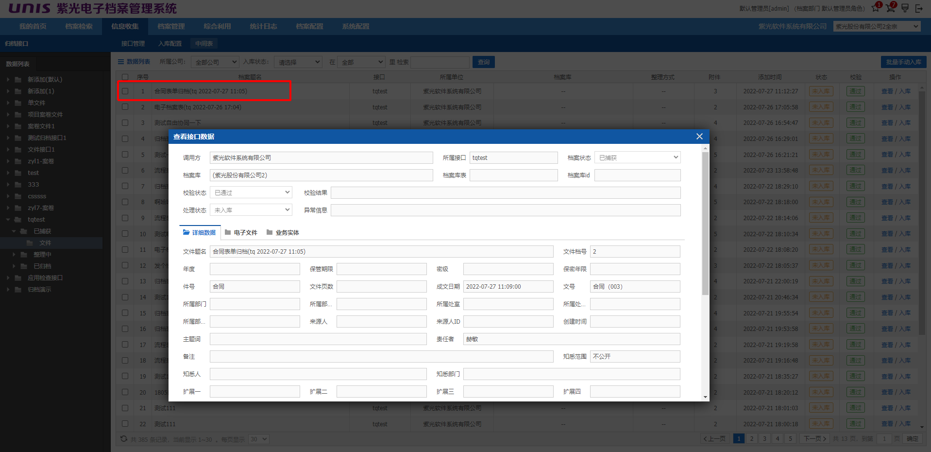 步骤4、可进入紫光档案管理系统,查看归档信息,也可通过FTP查看具体的归档内容