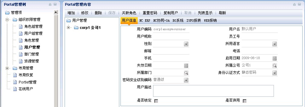 利用A8现有的Portal,实现NC系统的多账户登录;
