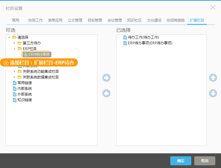 待办获取: 两种选择方式(启用,停用),启用为在协同待办列表中获取并显示NC对应人员的待办,停用为不再获取并显示对应待办;
