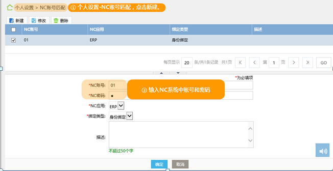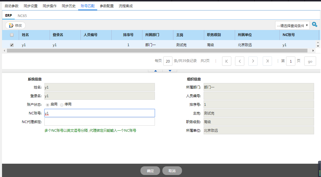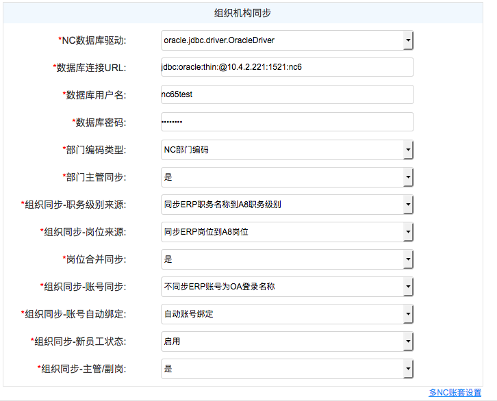 实现NC中多账户信息与A8中人员的手工关联;