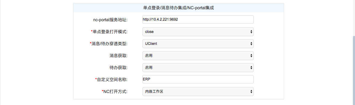 # 3.1.1.2单点登录/消息待办/NC门户参数设置