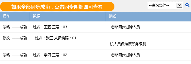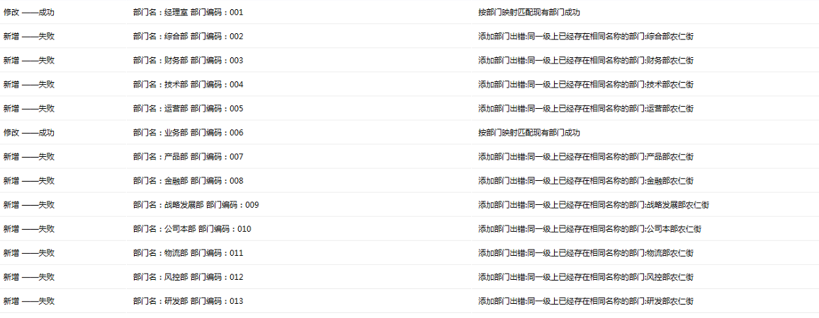 注意此处查询出来的正常情况下数据仅为一条,组织同步时根据该映射进行一对一匹配映射