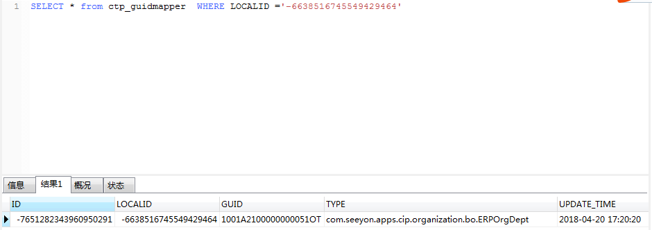 ctp_guidmapper**中查询,localid就是OA系统的部门id ,guid 就是nc系统中的部门id,具体sql如下