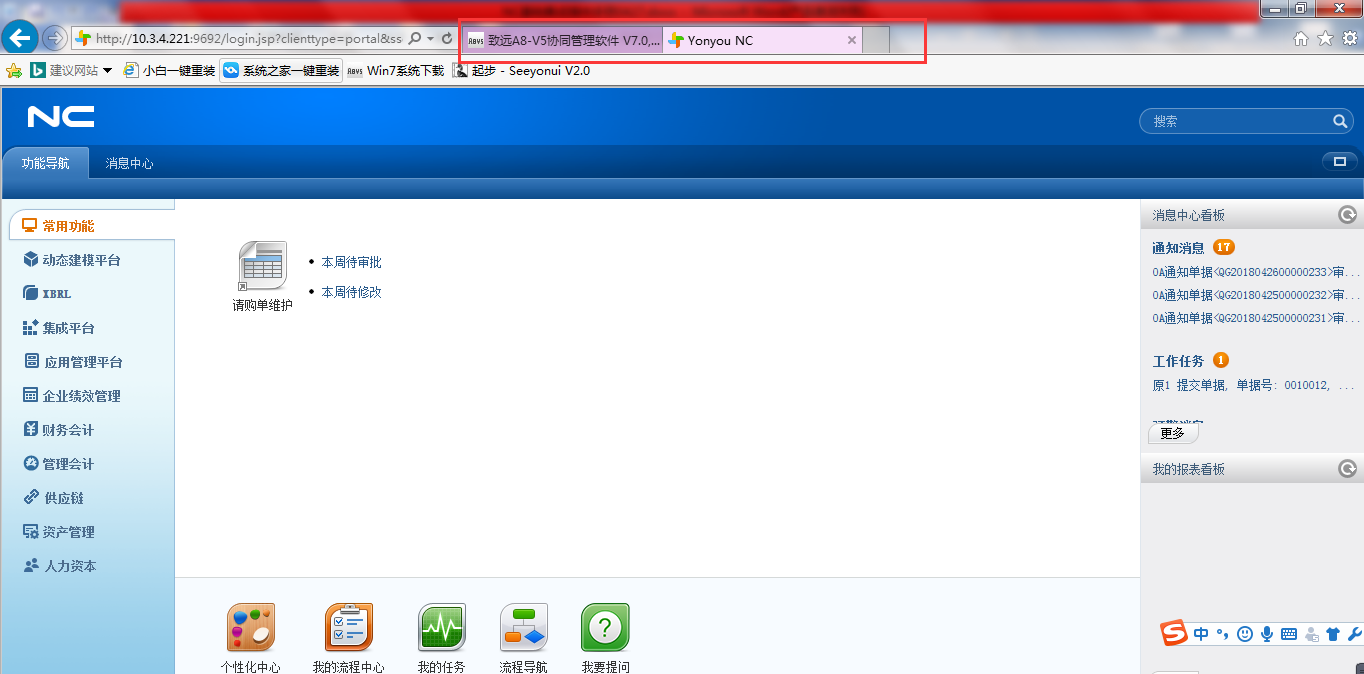 在A8-m协同系统中,实现NC消息集成,及时获得NC系统公告信息;