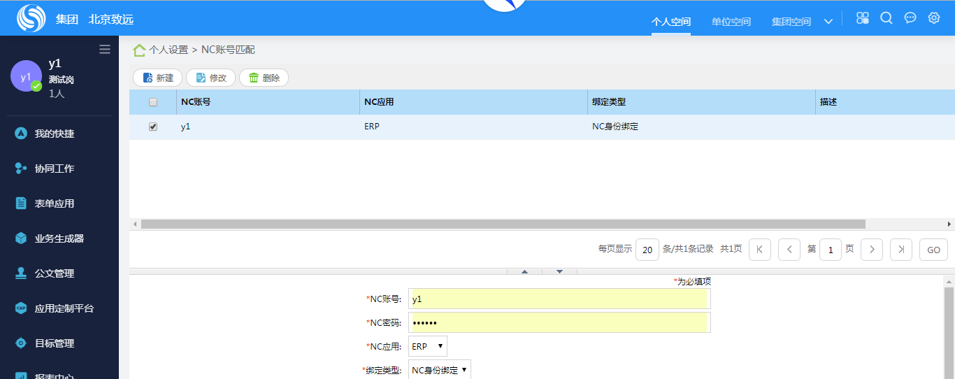 第四步:多NC任务集成。账号匹配后,可在OA个人空间中配置多个NC待办栏目。
