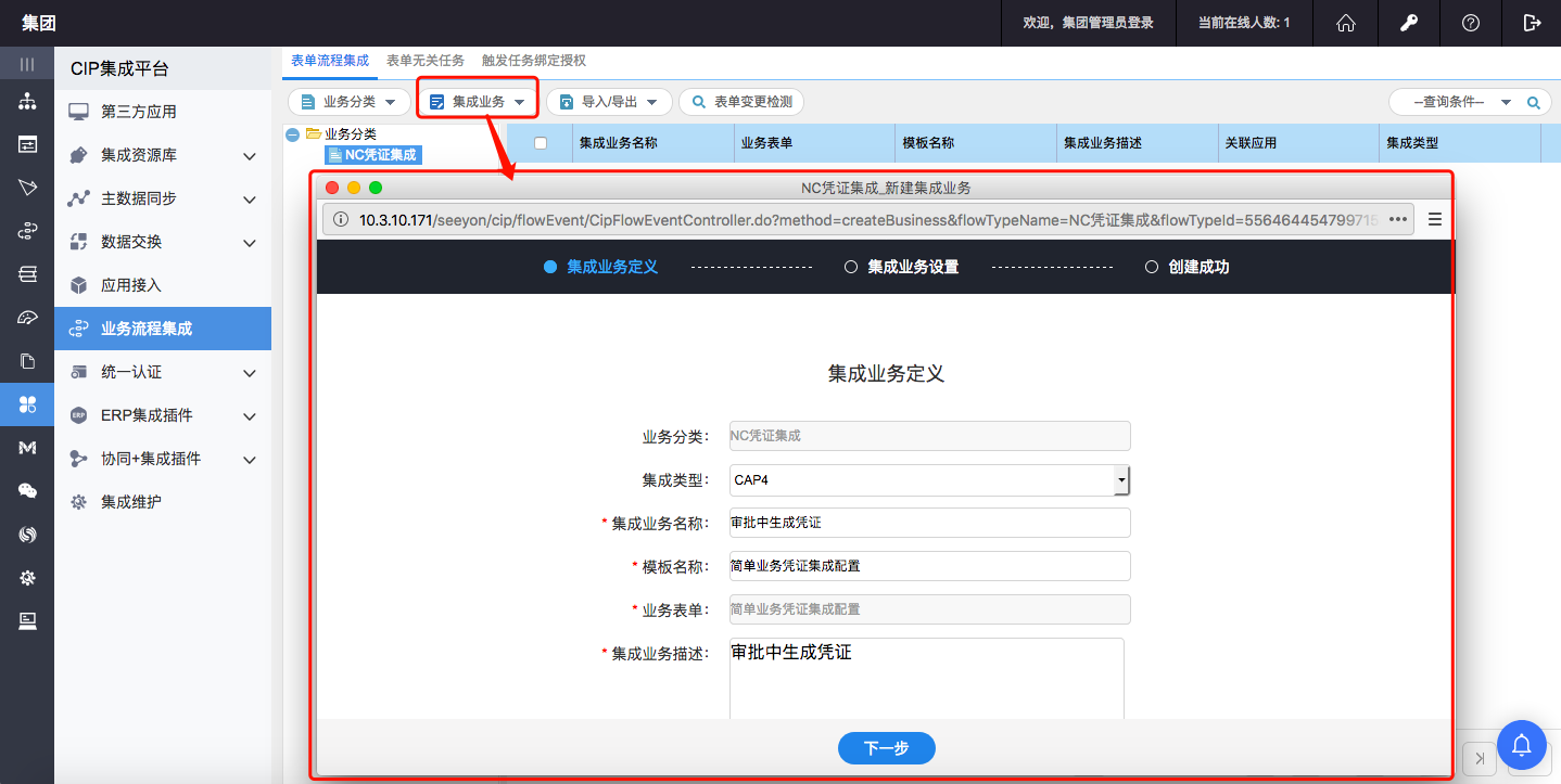 操作步骤:使用集团管理员或单位管理员登录,在"单据映射"新建。