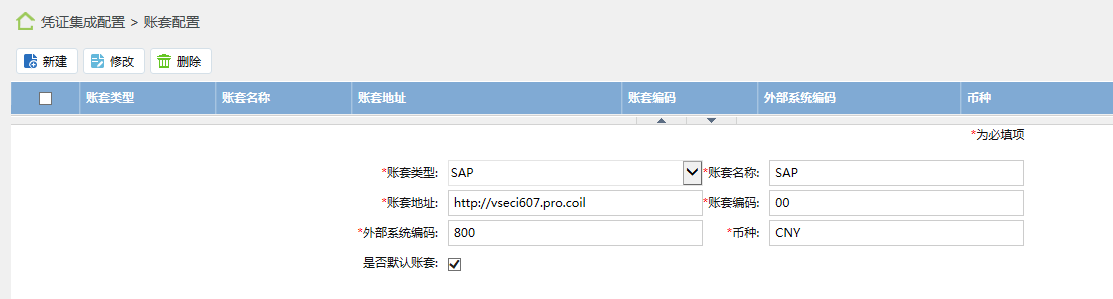 **是否默认账套:**勾选"默认账套"后,在凭证生成时会直接显示该账套名称。