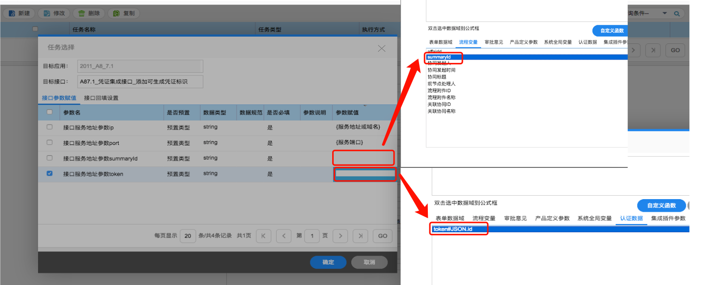 **token:**设置成【认证数据】-【token#JSON.id】,前提务必在【应用注册】-【致远协同V7.1已经设置好对应的rest用户和rest密码】,否则集成会没有权限;