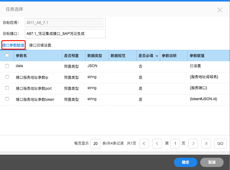 将A8系统中流程表单字段与SAP凭证字段数据进行一一对应。