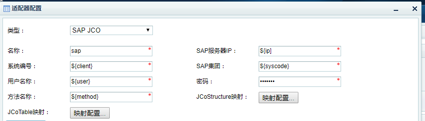 在适配器配置界面,可以使用 “${参数名称}”或“$参数名称”的方式动态引用参数容器 里的数据。例如下图文本框内的引用:
