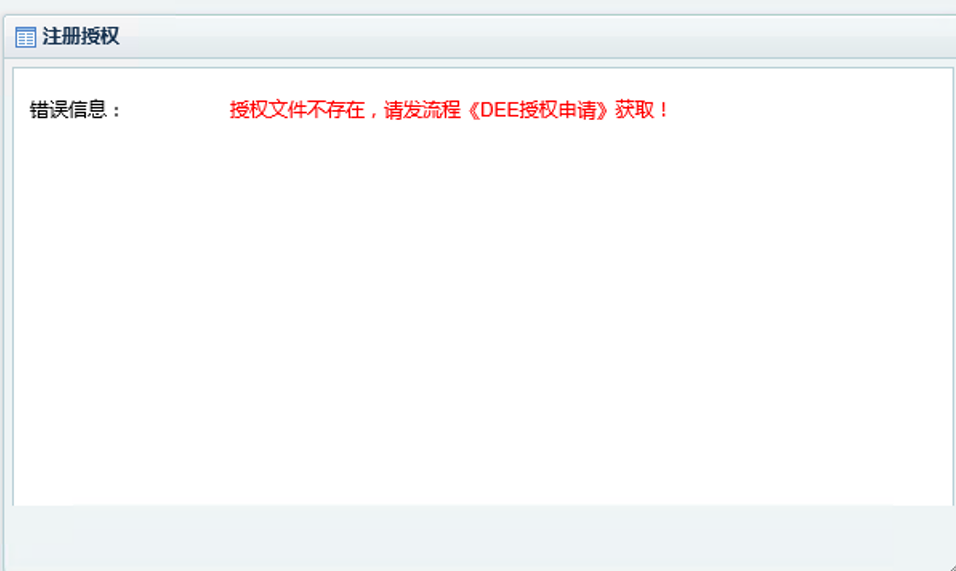 | 访问 | 授权已过期,请重新注册! | 授权过期 | 提交《DEE授权申请单》,申请新的授权文件 | ![]() |