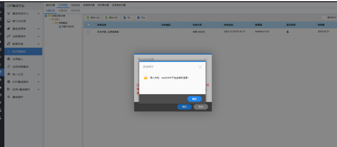 DEE工具导入DEE任务时只需确保是正确drp文件即可,不进行授权校验。