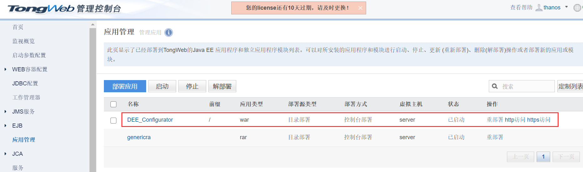 登录东方通管理界面: http://IP:9060/console/rest (默认端口是9060)