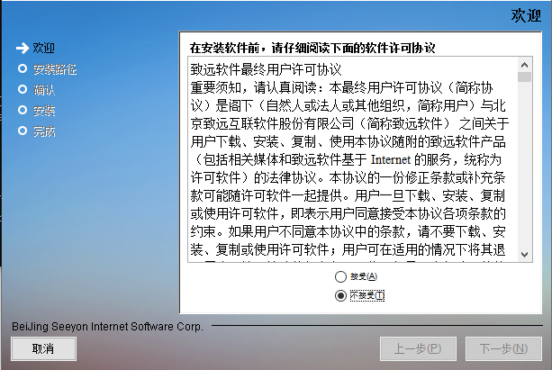 第2步:选择接受按照提示依次点击"下一步"即可完成安装 ,点击"完成"结束安装;