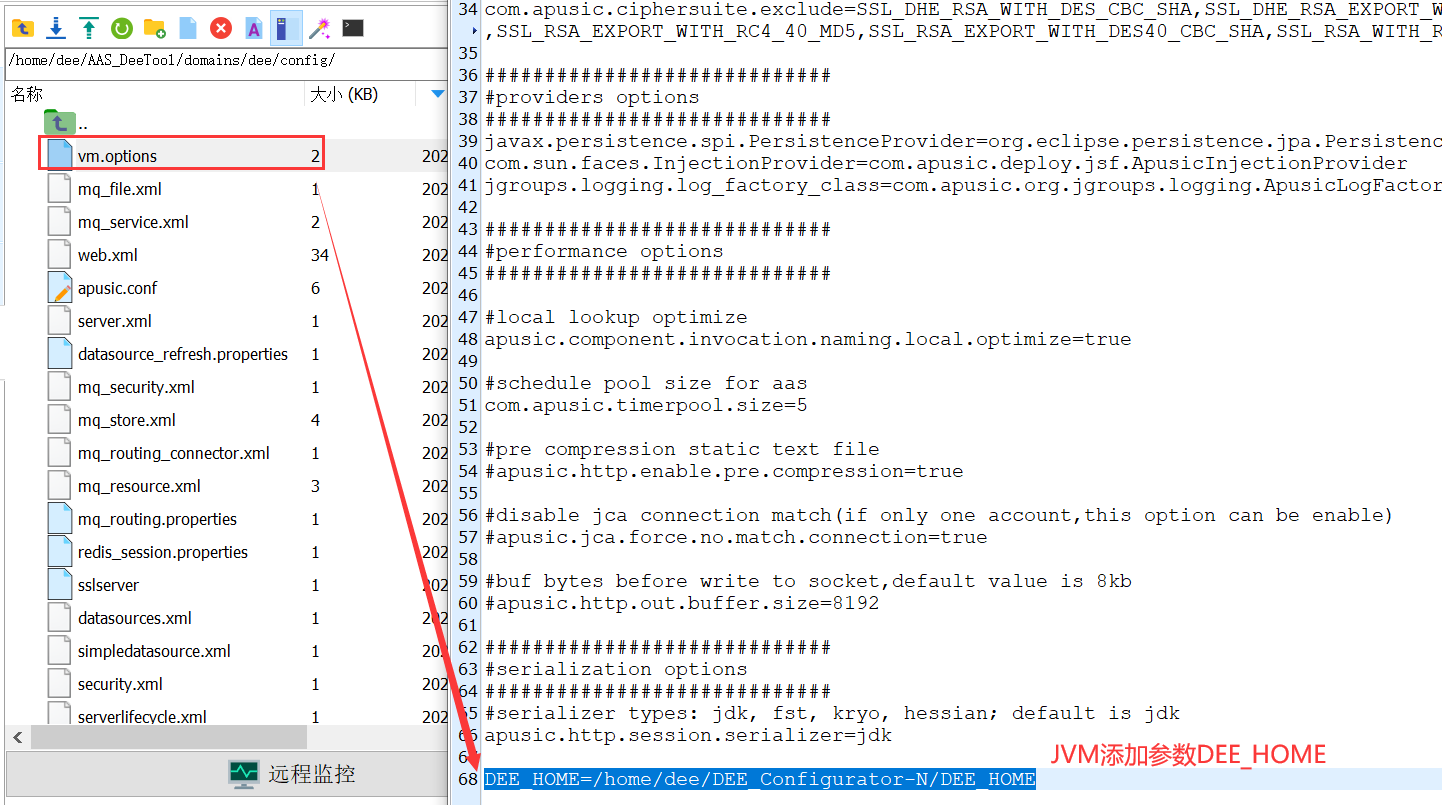 进入域${AAS_HOME}/domains/dee/config/vm.options添加DEE_HOME配置如下:
