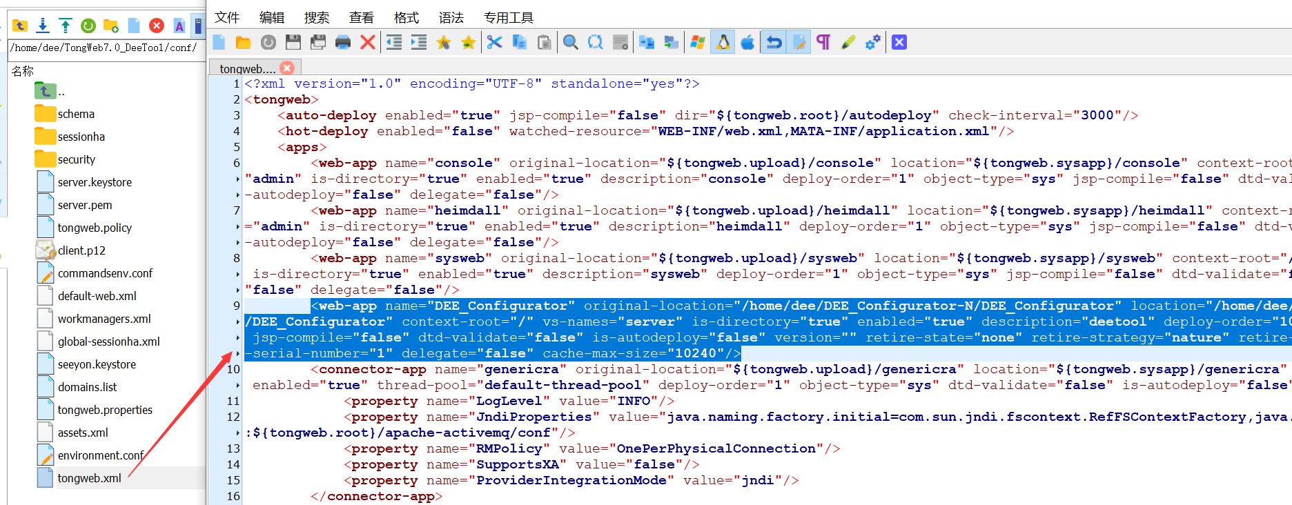 注意:为了说明方便将DEE_Configurator-N解压后的路径记作${DEE_Configurator-N_HOME};东方通的安装目录路径为${TongWeb_Home},如果未安装东方通,请先安装。