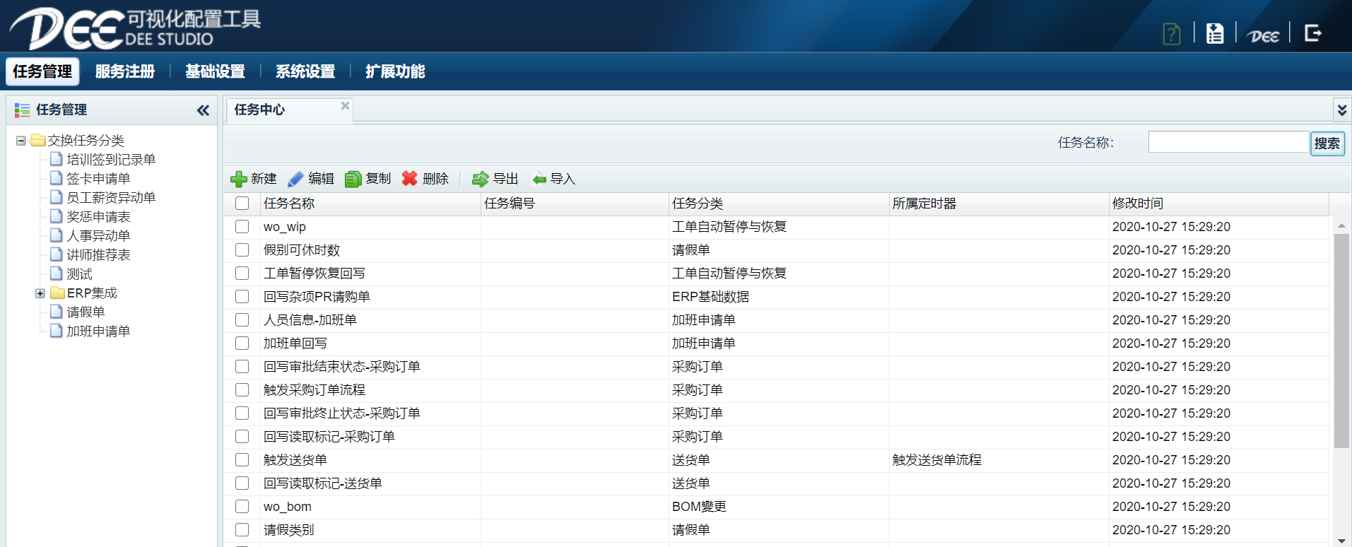 1:登录DEE可视化工具,勾选所有dee任务(默认每页20条,到时记得调整一下每页数量,不然不认真了只导出20条,多页了就导出多个drp即可)把旧的工具中dee任务全部导出来,到时安装好新的工具时再导入即可。
