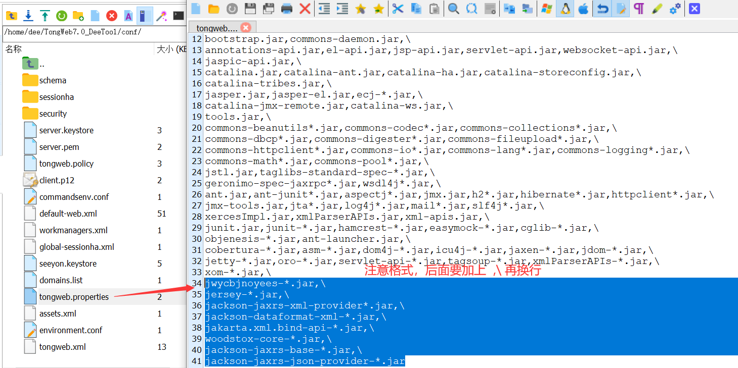 进入${TongWeb_Home}/conf/tongweb.properties,修改tongweb.util.scan.StandardJarScanFilter.jarsToSkip属性,根据已有格式在最后添加扫描过滤: