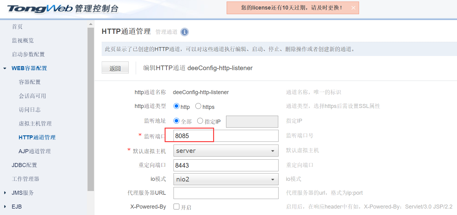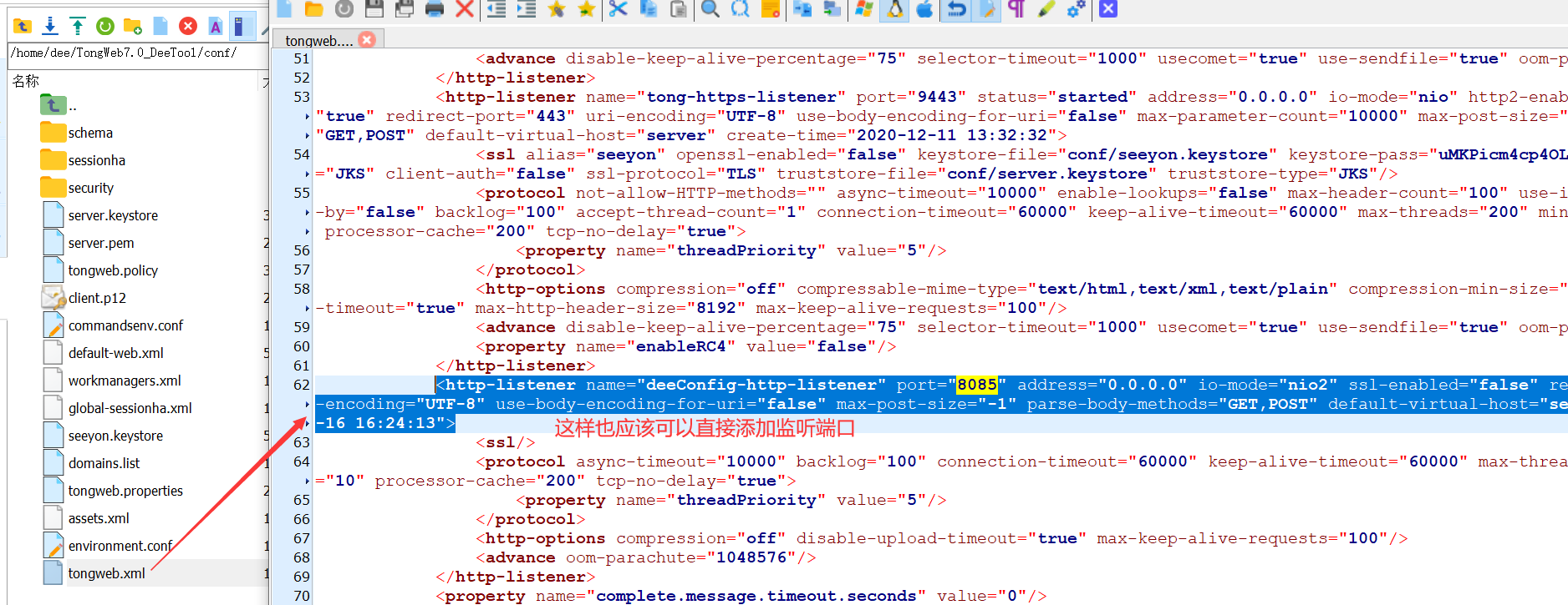 <http-listener name="deeConfig-http-listener" port="8085" address="0.0.0.0" io-mode="nio2" ssl-enabled="false" redirect-port="8443" uri-encoding="UTF-8" use-body-encoding-for-uri="false" max-post-size="-1" parse-body-methods="GET,POST" default-virtual-host="server" create-time="2021-03-16 16:24:13">