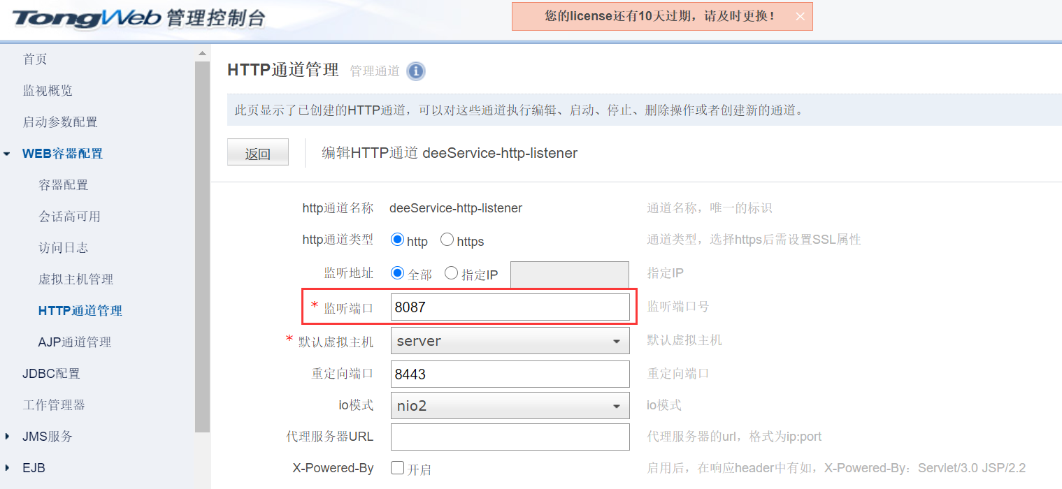 创建HTTP通道管理,端口设置为8087,然后登录dee中间件服务(http://IP:8087 (opens new window))