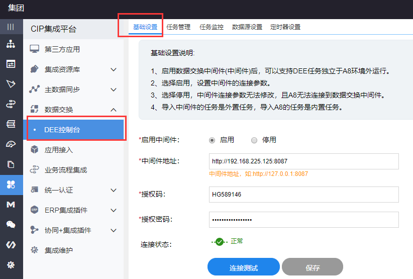 本版本数据交换中间件(V4.5)仅适配A8+ V9.0版本的连接和DEE V4.5可视化配置工具制作的任务。