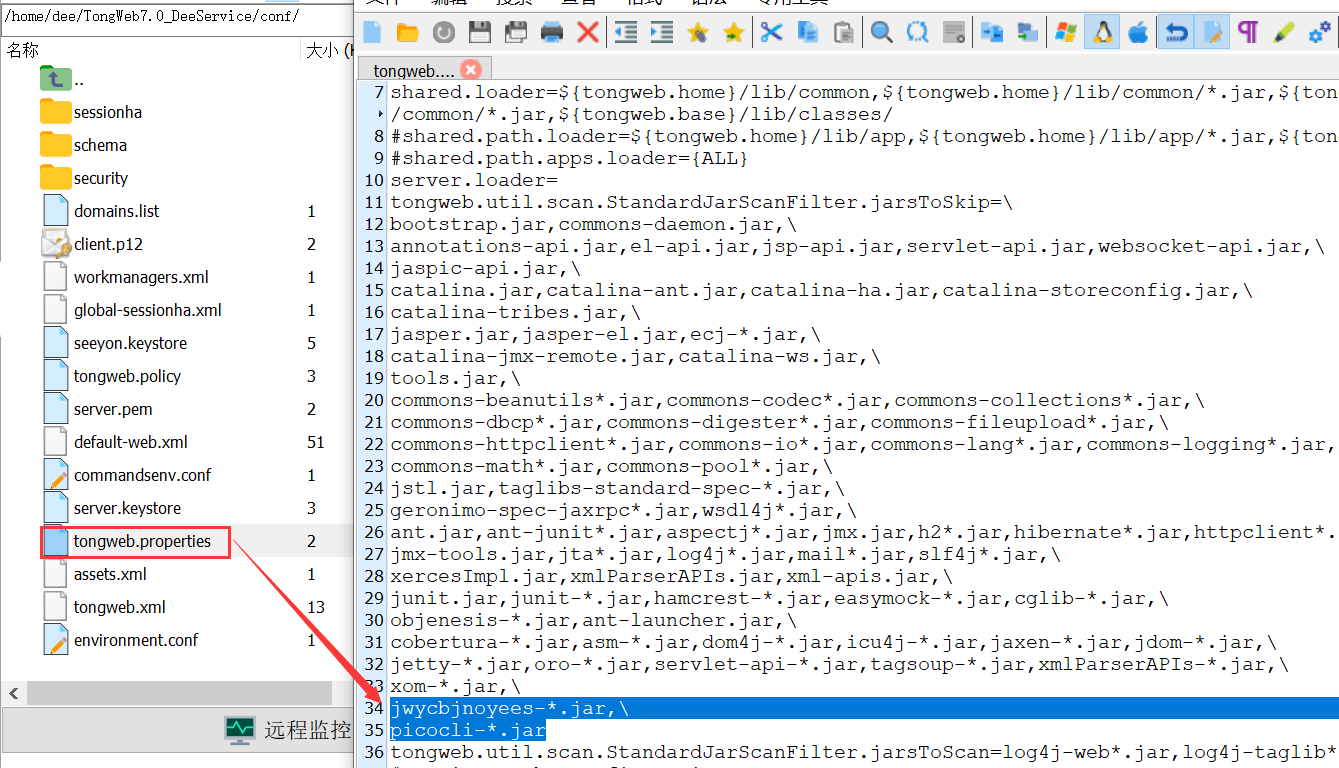 进入${TongWeb_Home}/conf/tongweb.properties,修改tongweb.util.scan.StandardJarScanFilter.jarsToSkip属性,根据已有格式在最后添加扫描过滤: