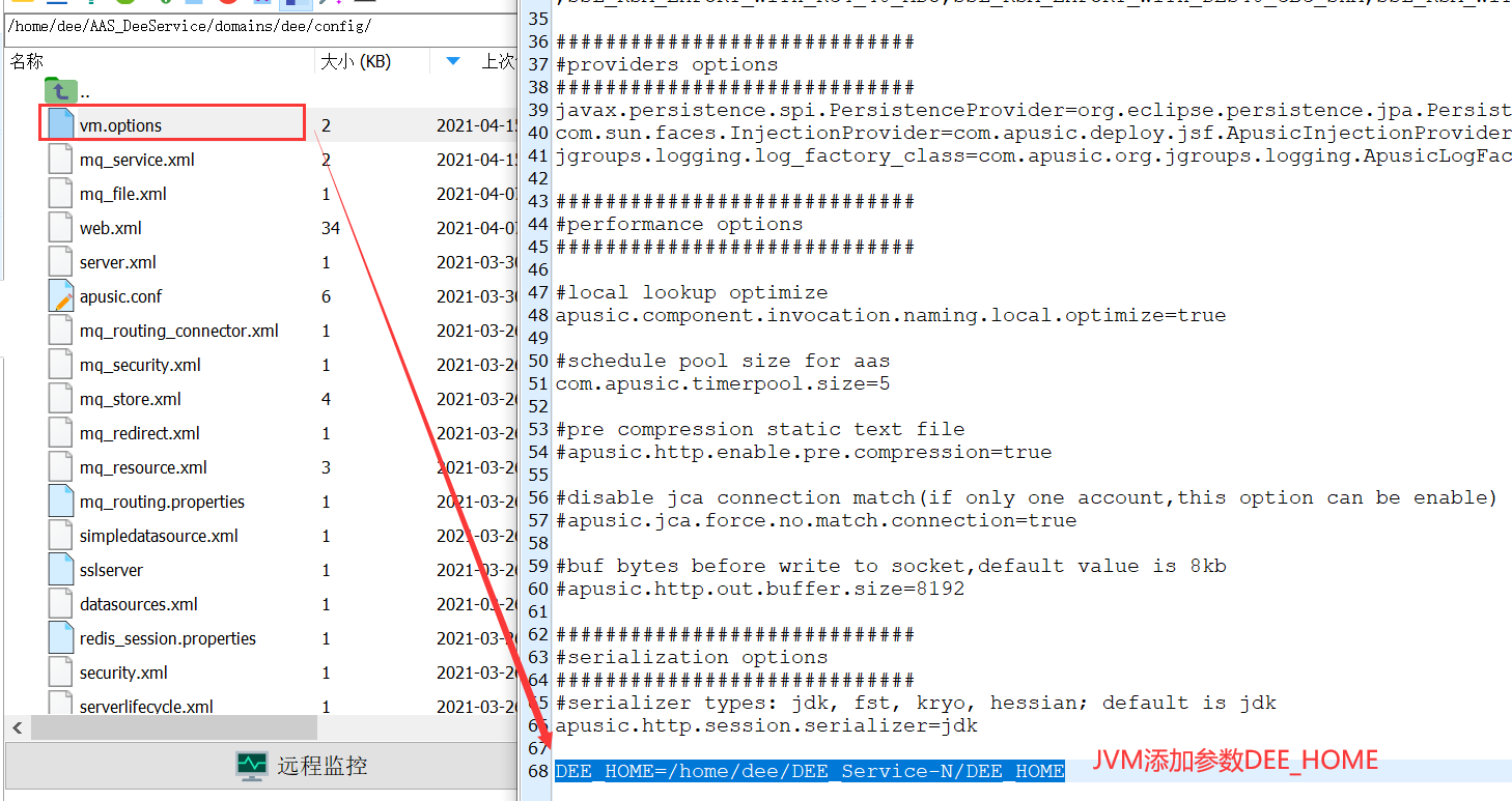 进入域${AAS_HOME}/domains/dee/config/vm.options添加DEE_HOME配置如下: