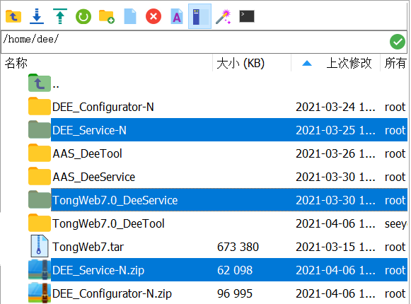 上传DEE_Service-N.zip到信创环境,并解压到${DEE_ Service-N_HOME},比如: