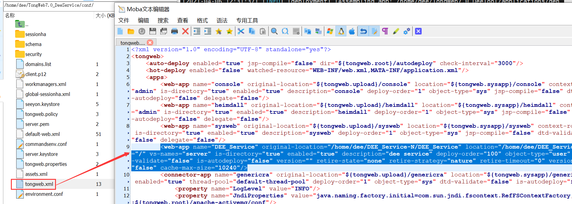 注意:为了说明方便将DEE_Service-N路径记作${DEE_Service-N_HOME};东方通的安装目录路径为${TongWeb_Home},如果未安装东方通,请先安装。