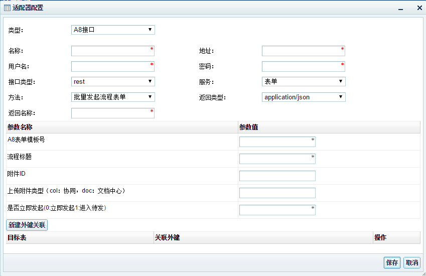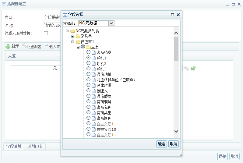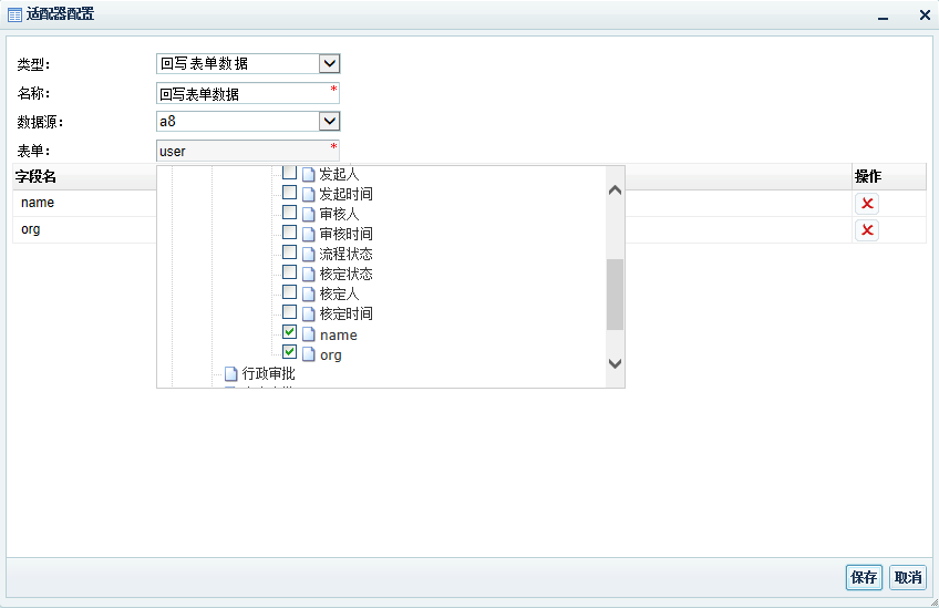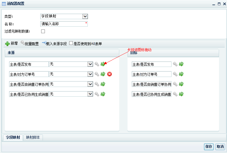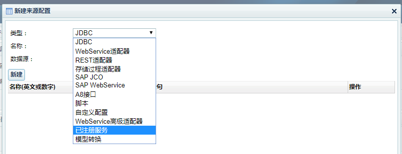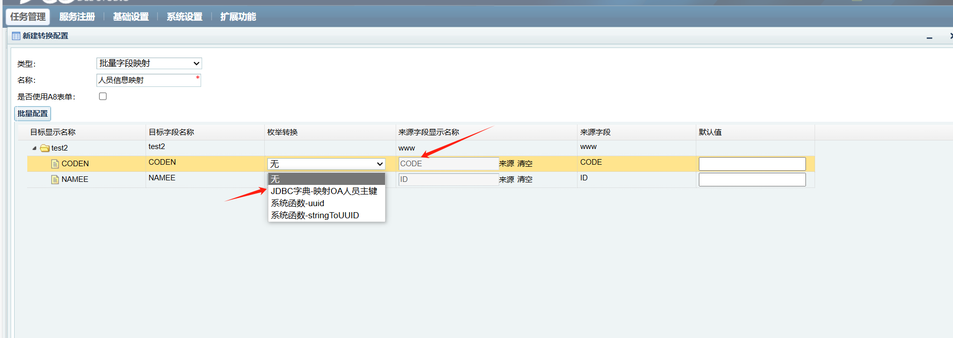 A8接口(枚举值导出),可实现从A8+系统导出枚举数据到第三方系统在来源配置框中,点击