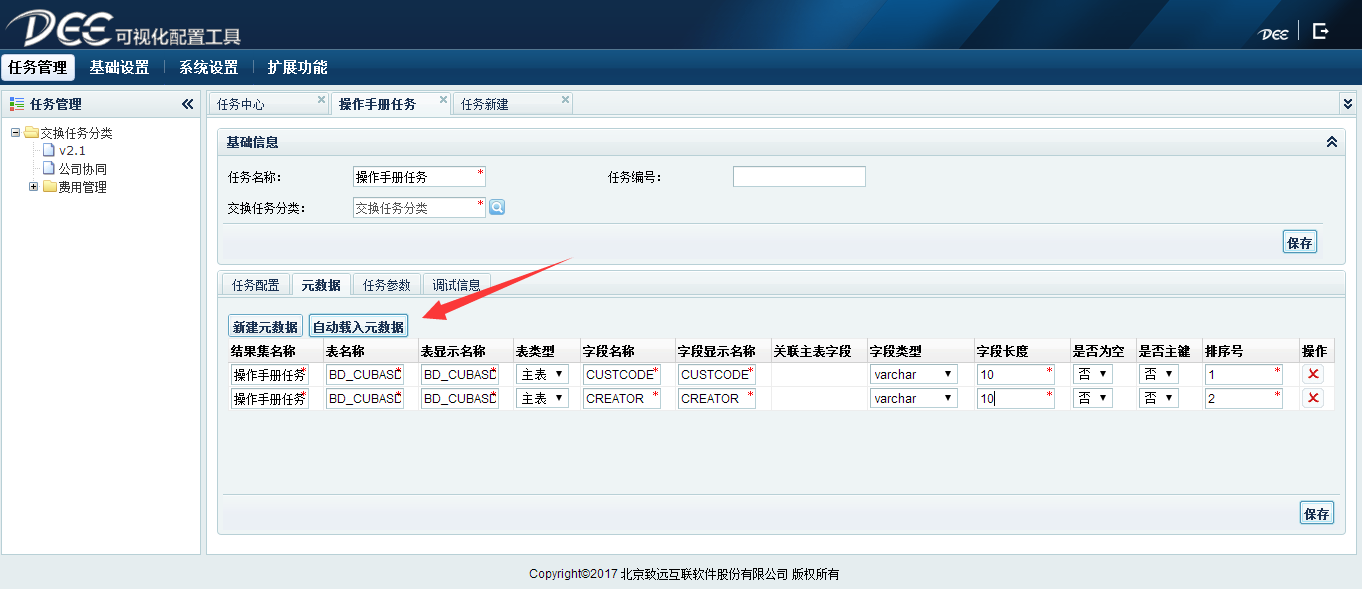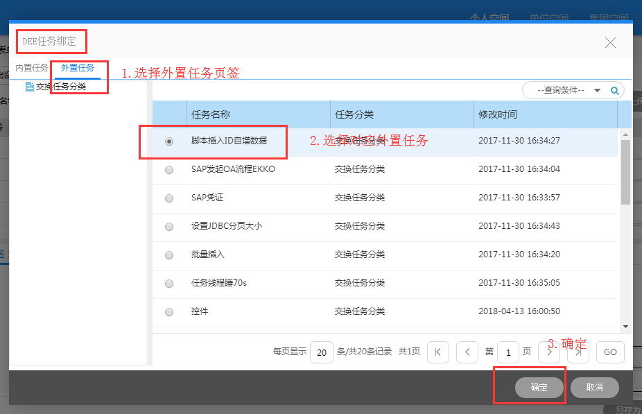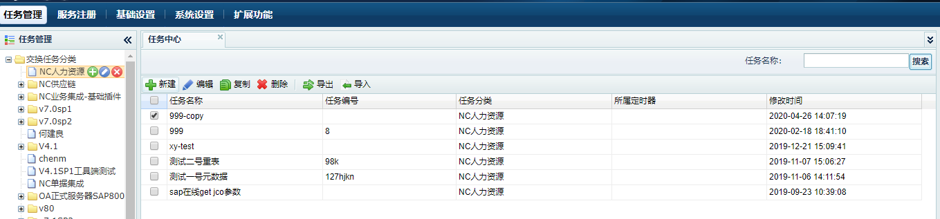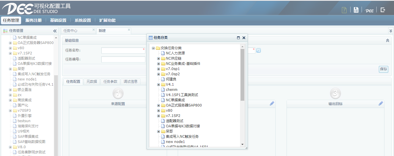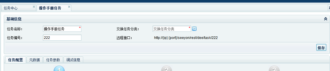 **第三步:**输入任务名称,选择是否填写任务编号(供远程调用使用),点击交换任务分类查找按钮