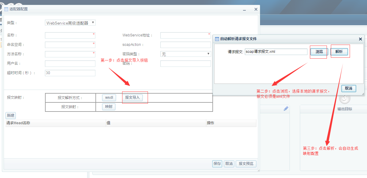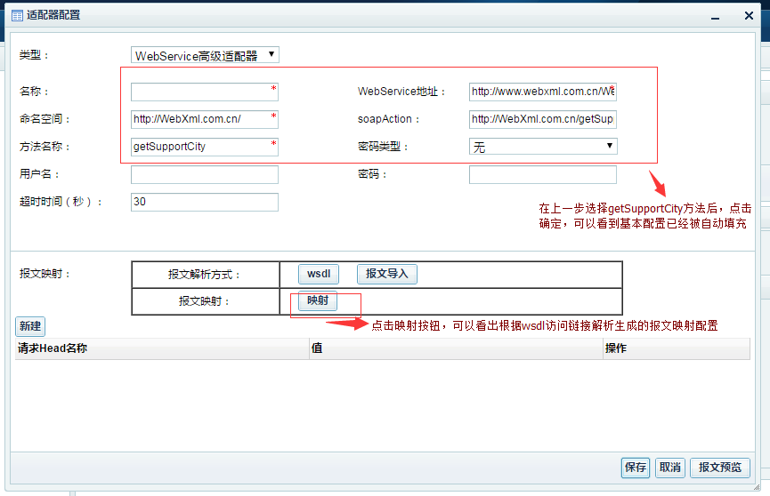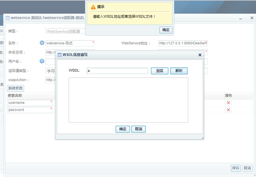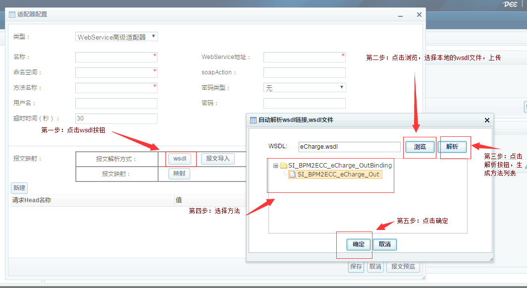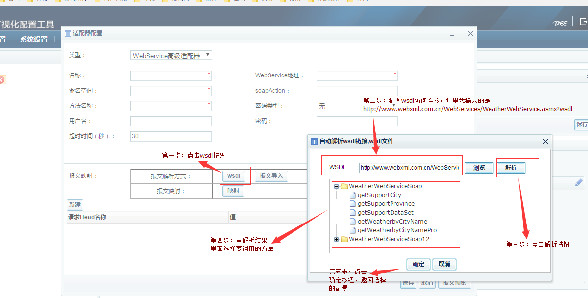 从DEE V2.2版本开始对webservice适配器信息填写进行了优化,添加了自动解析webservice功能,如下图2所示