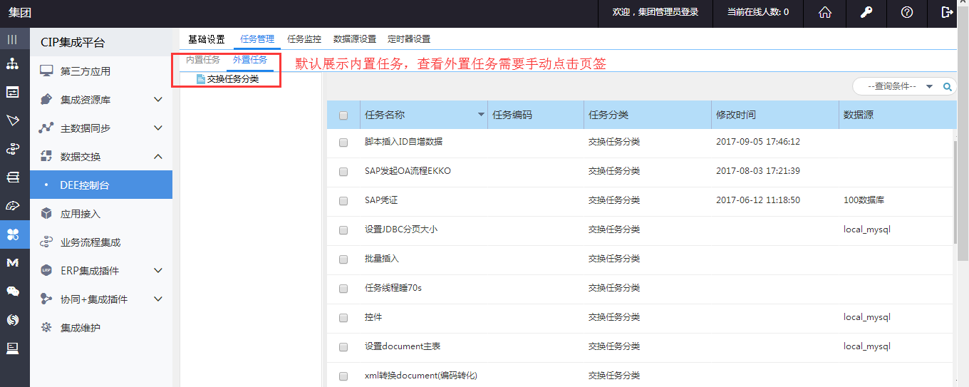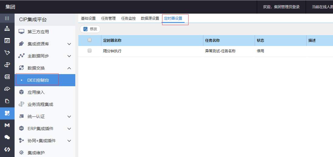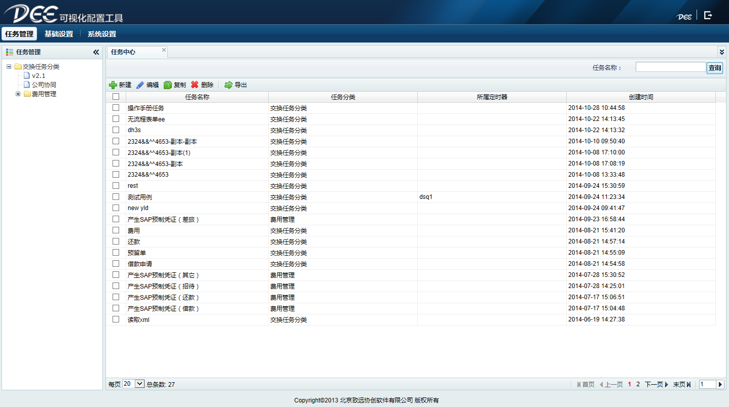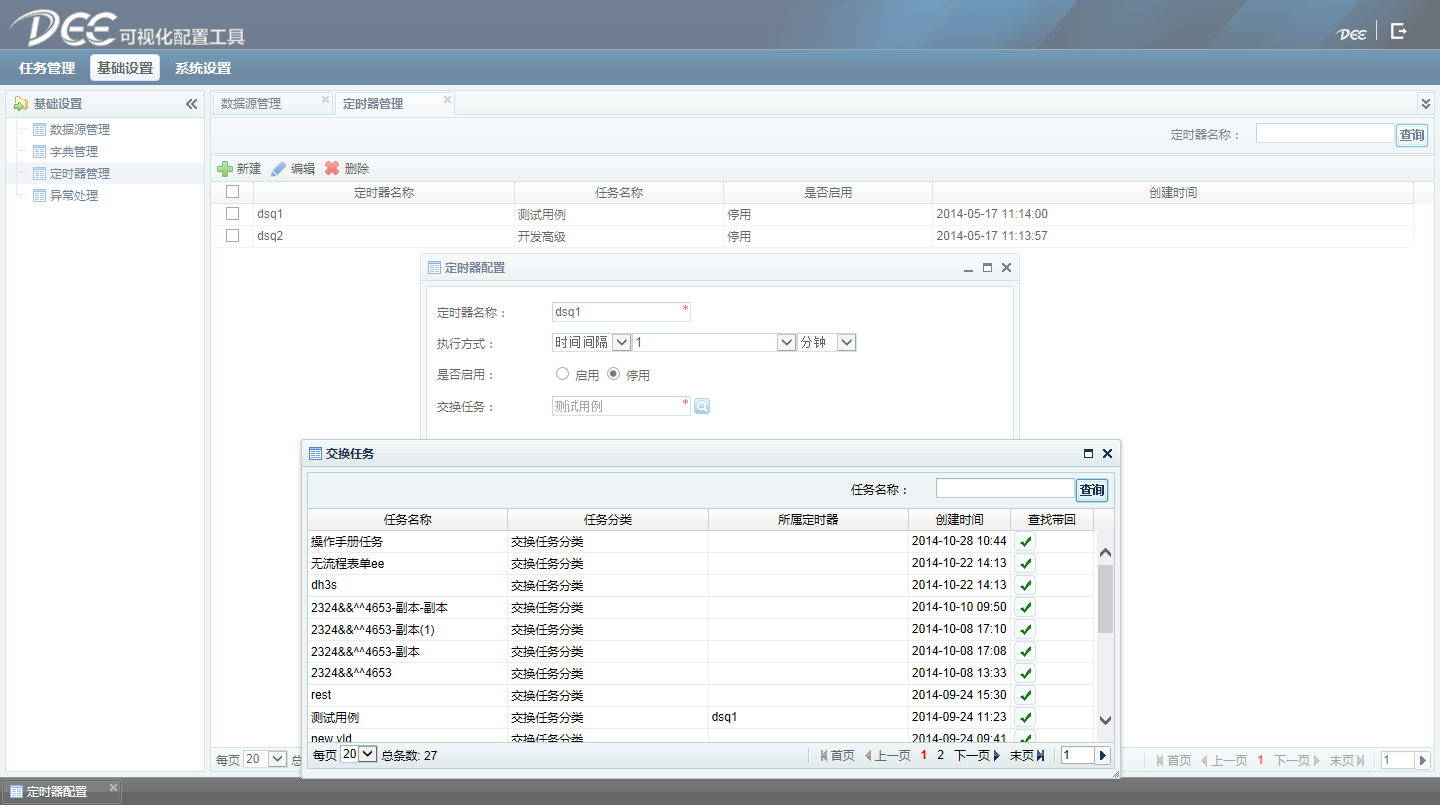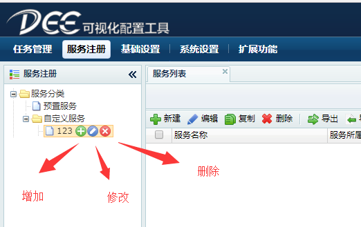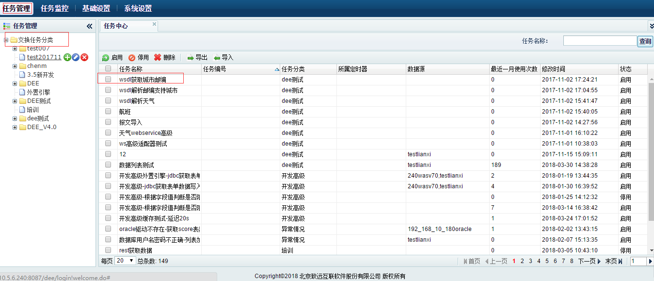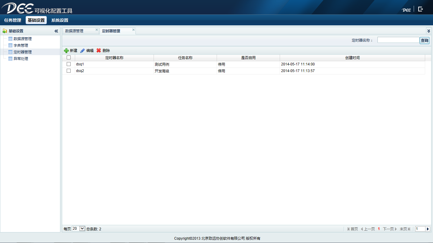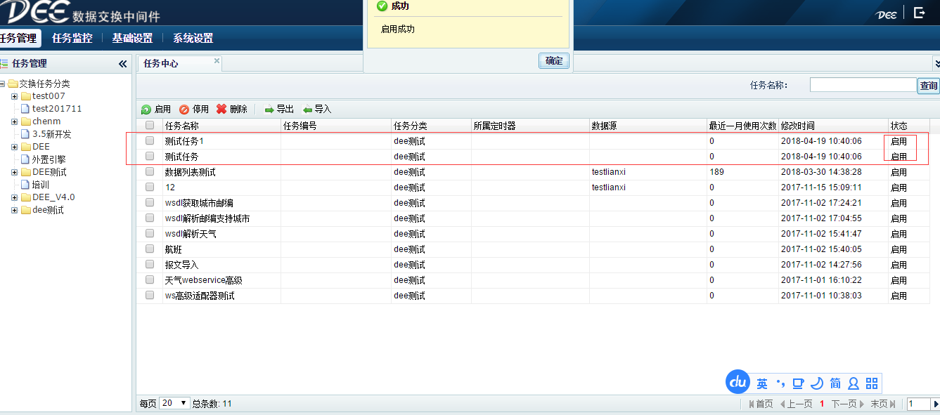 提供对dee任务的查看,删除,导入,导出,启动,停止操作