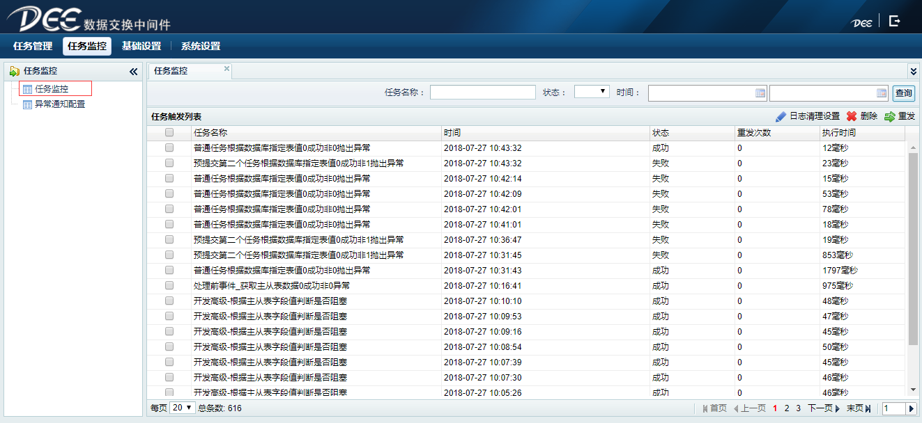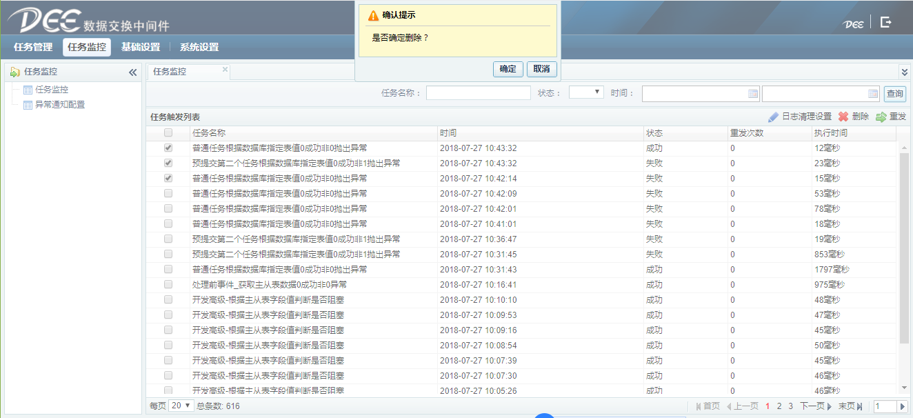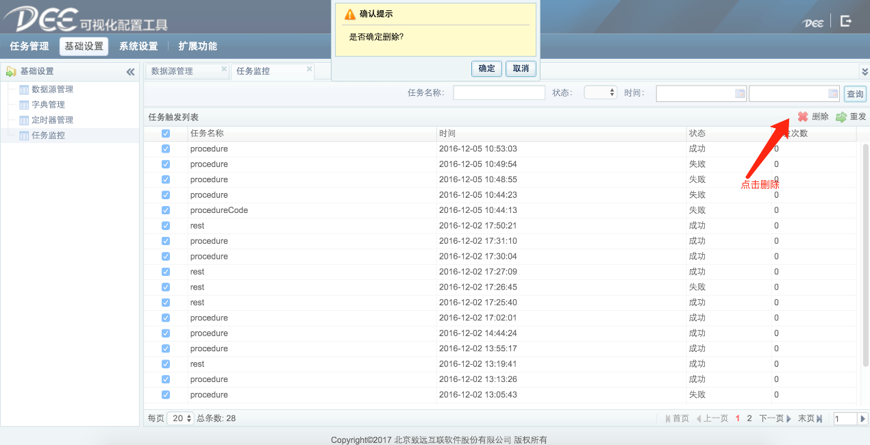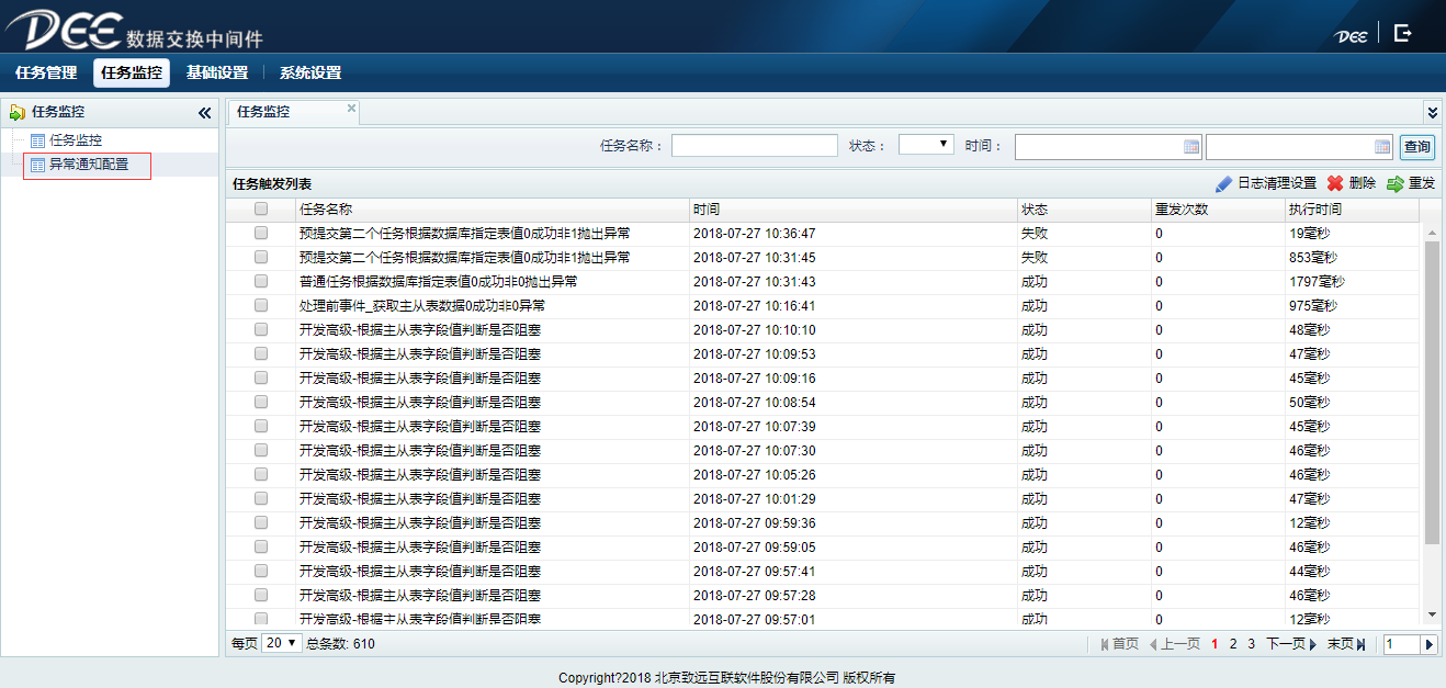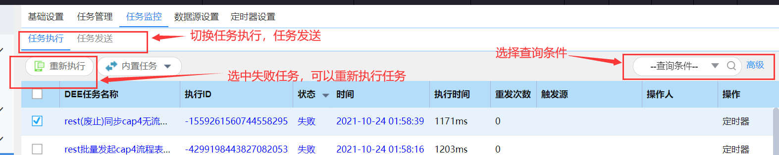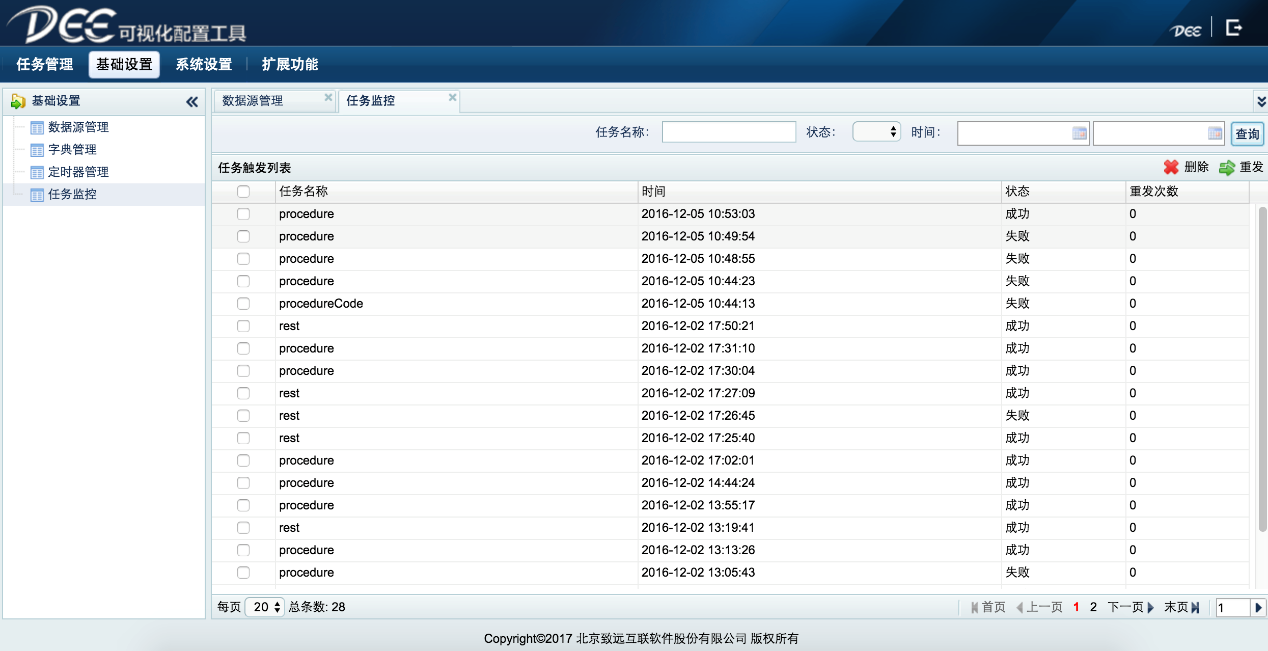 查询和删除任务触发记录,状态,数据等。重发异常任务